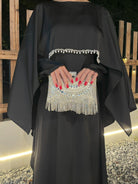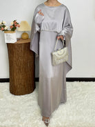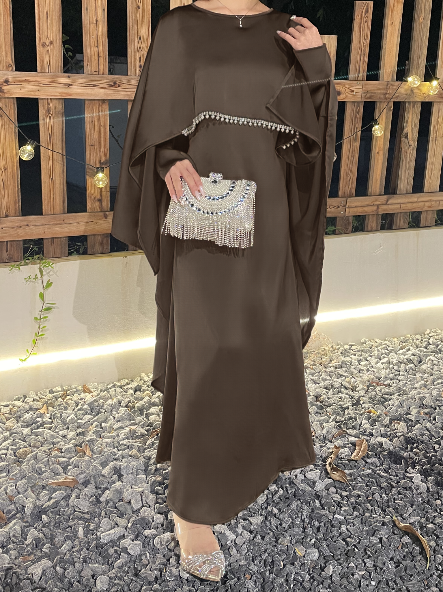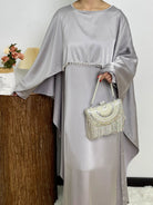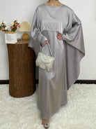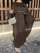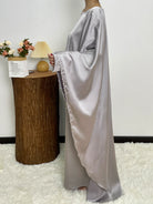 #CL43 Pearl & Crystal Butterfly Abaya ✦ Satin Cape Dress for Weddings & Evening Galas